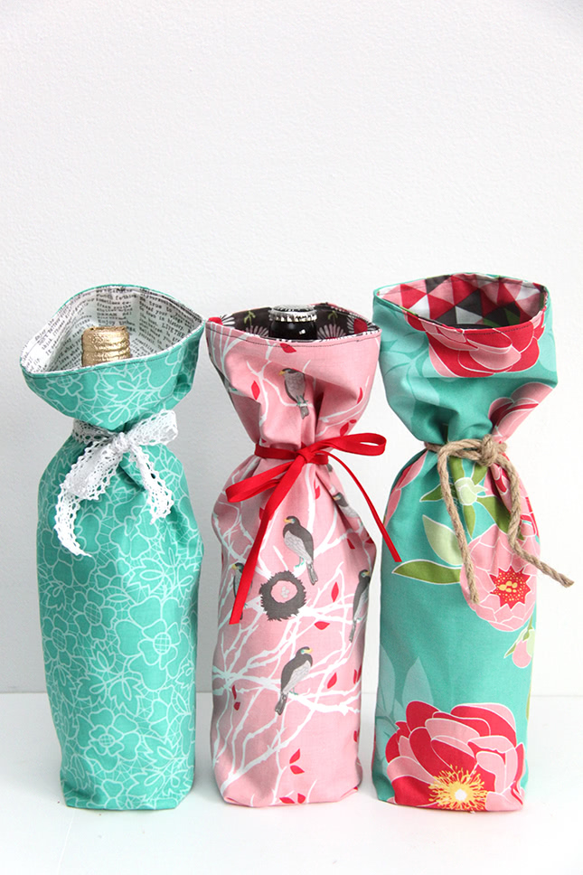 Who doesn’t love a good bottle of wine? Pick a bottle that you know they will like best, and easily make a stylish bag for the wine in 10 minutes.