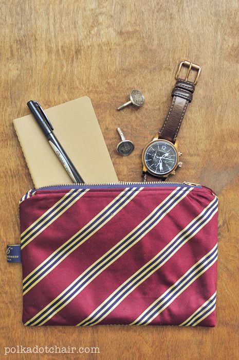 Give a normal pouch a makeover with this DIY necktie pouch. Now, your brother will have something stylish to carry around all of his smaller necessities.